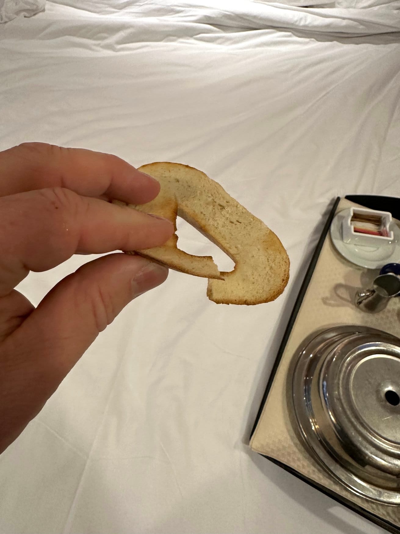 I didn't ask for much—coffee, a bagel with butter, tomato juice, yogurt, and bacon. This fairly safe combination has been my staple for years, and while never "good," it has at least been filling.