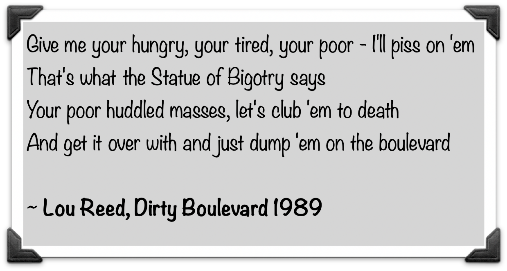 Your huddled masses yearning to breathe free,